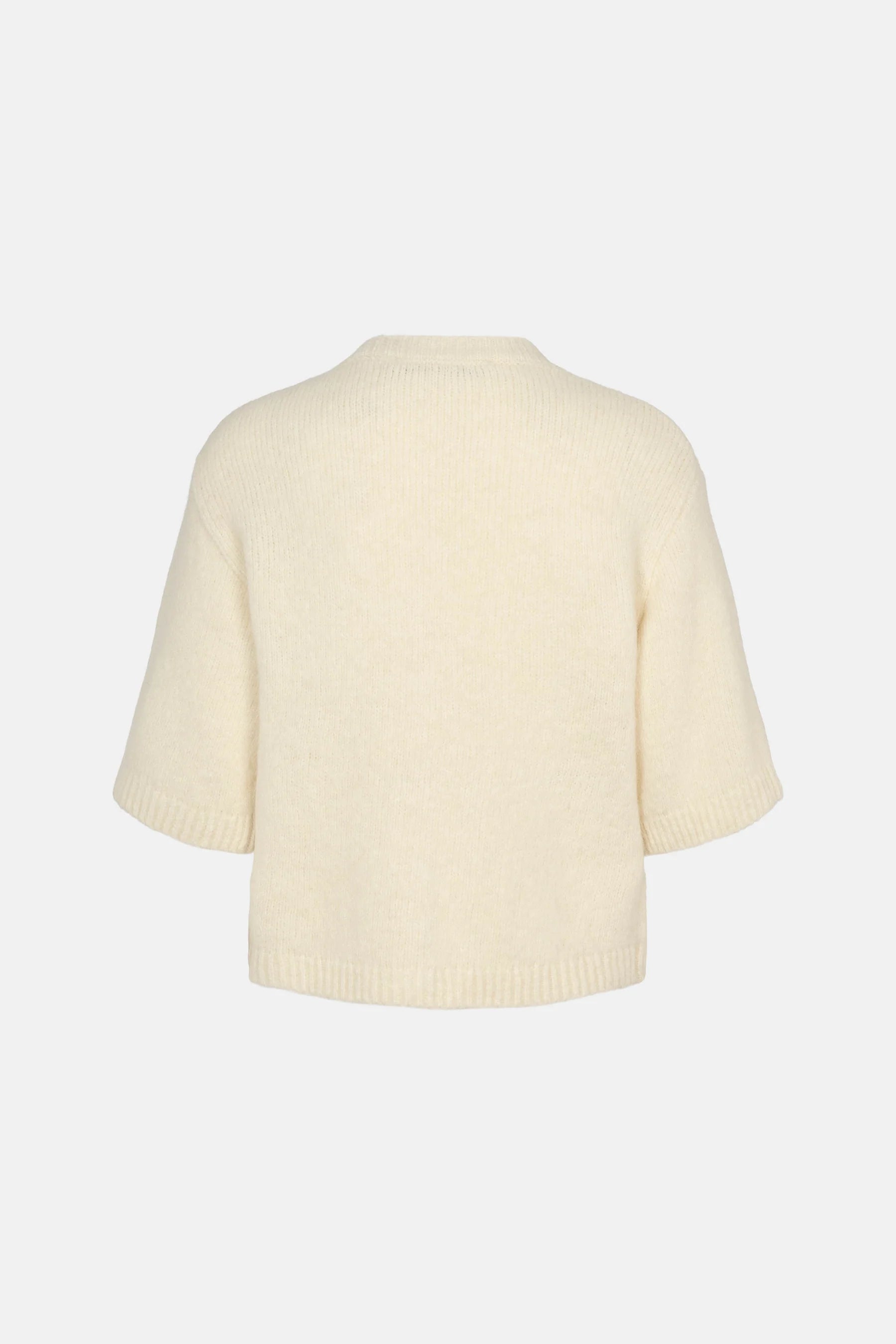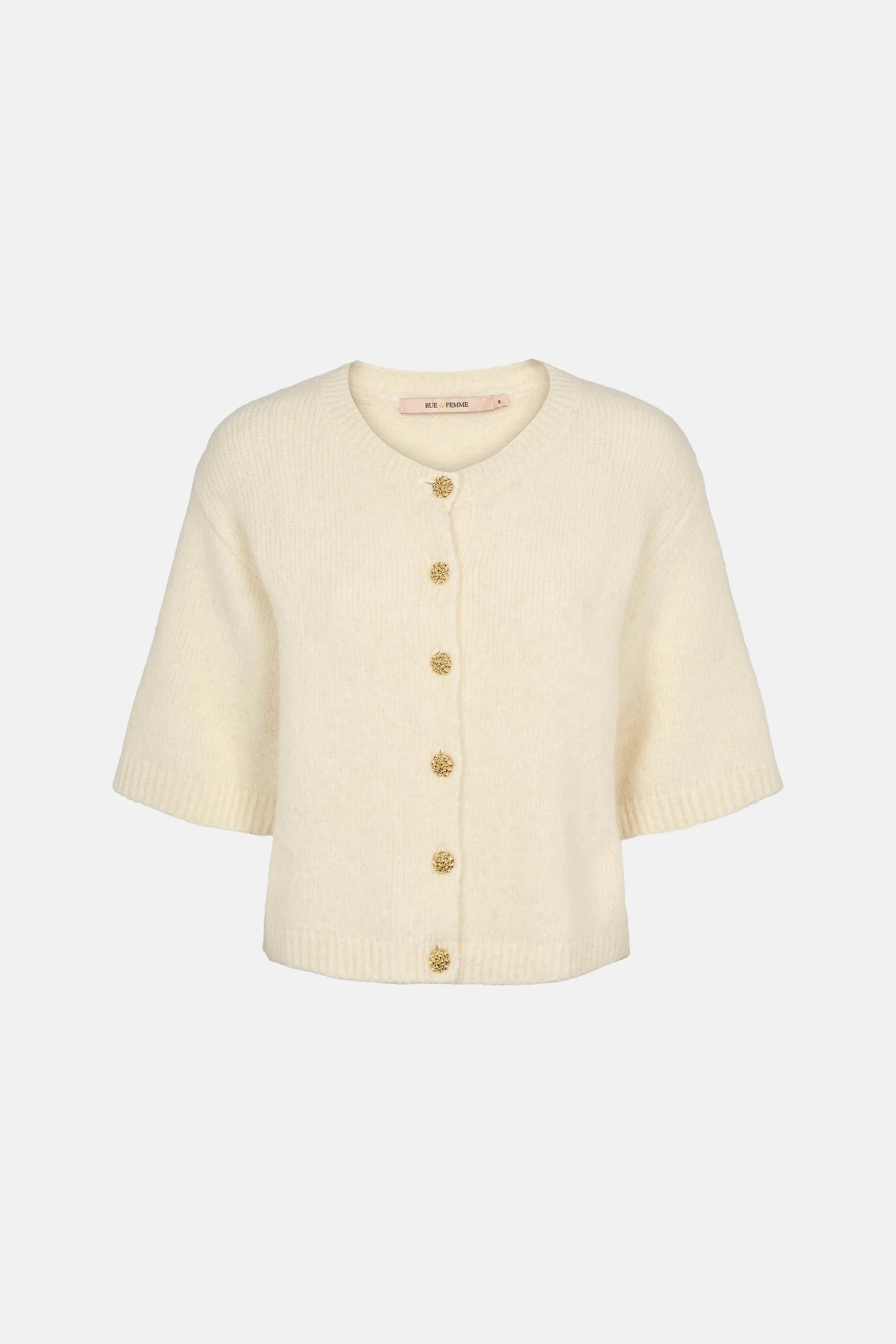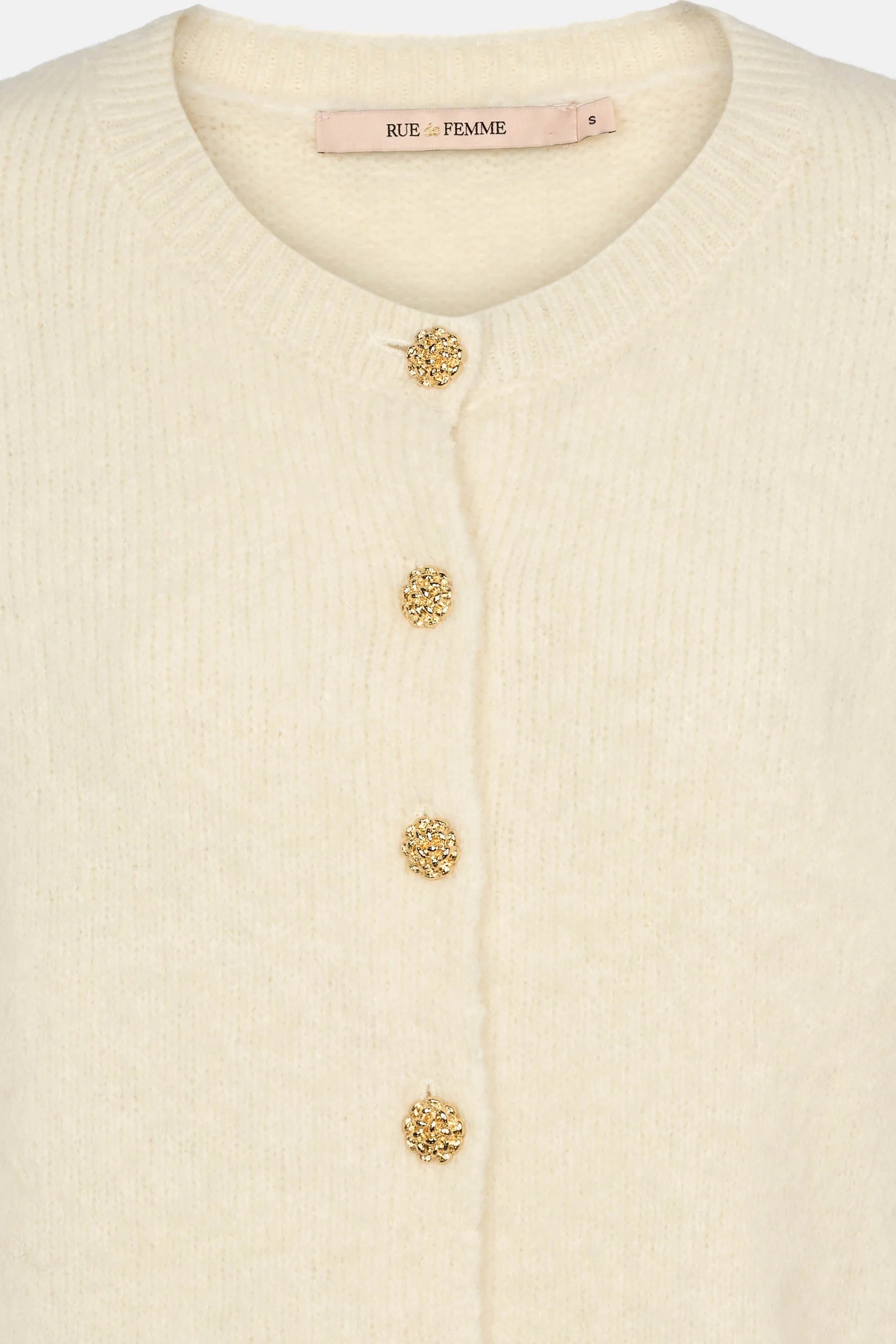 Deze mooie Elisa Gilet heeft een ronde hals, goude knopen en een 7/8 mouw.