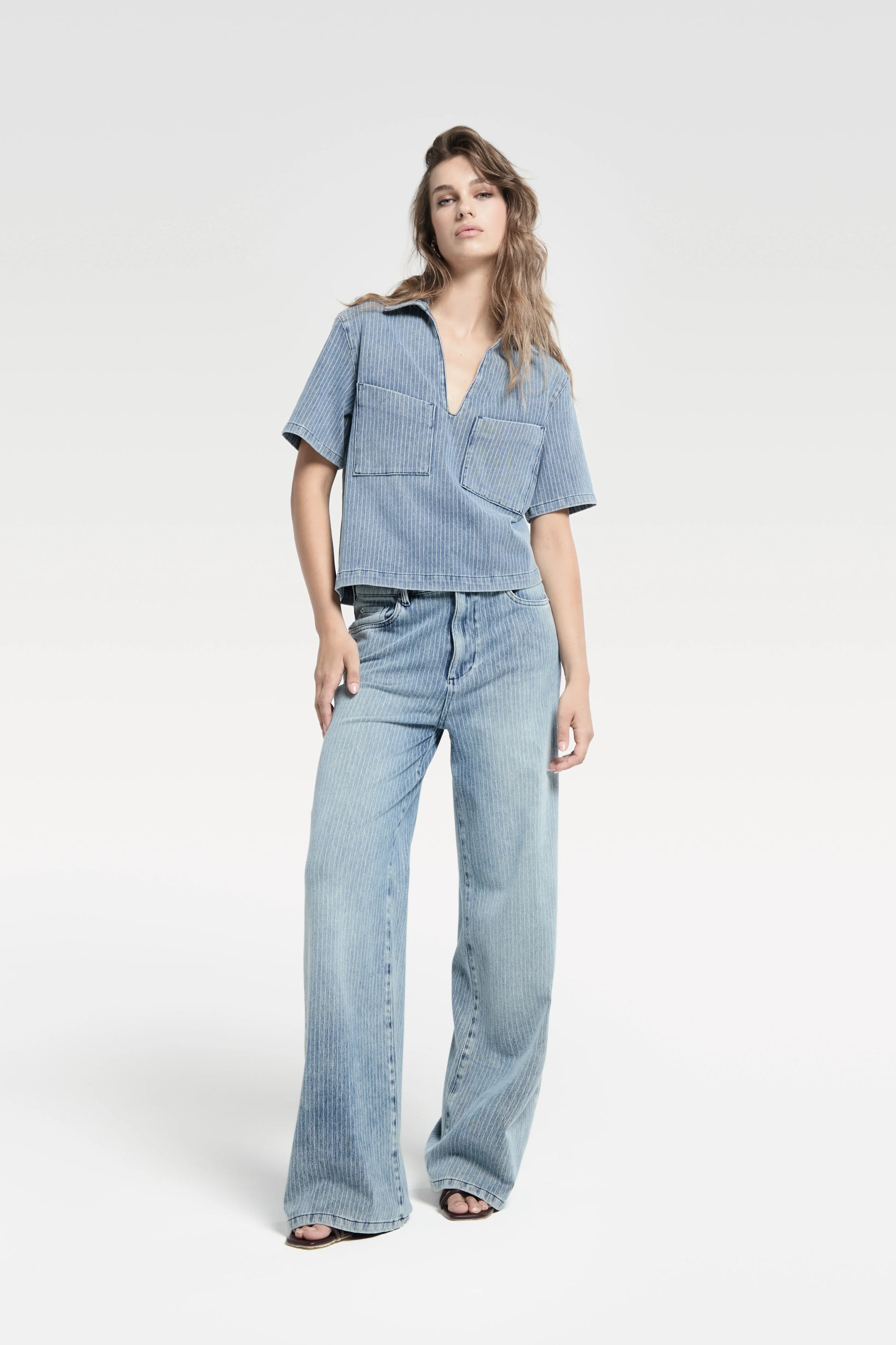 James Striped Wide Leg Jeans