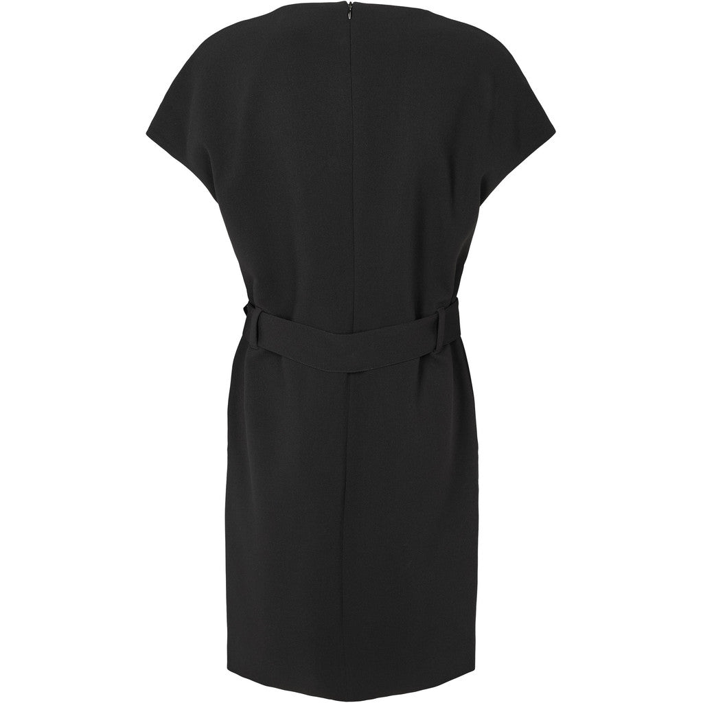 Leuke jurk korte mouw, ronde hals, en riem in de taille. Lengte tot net boven de knie.