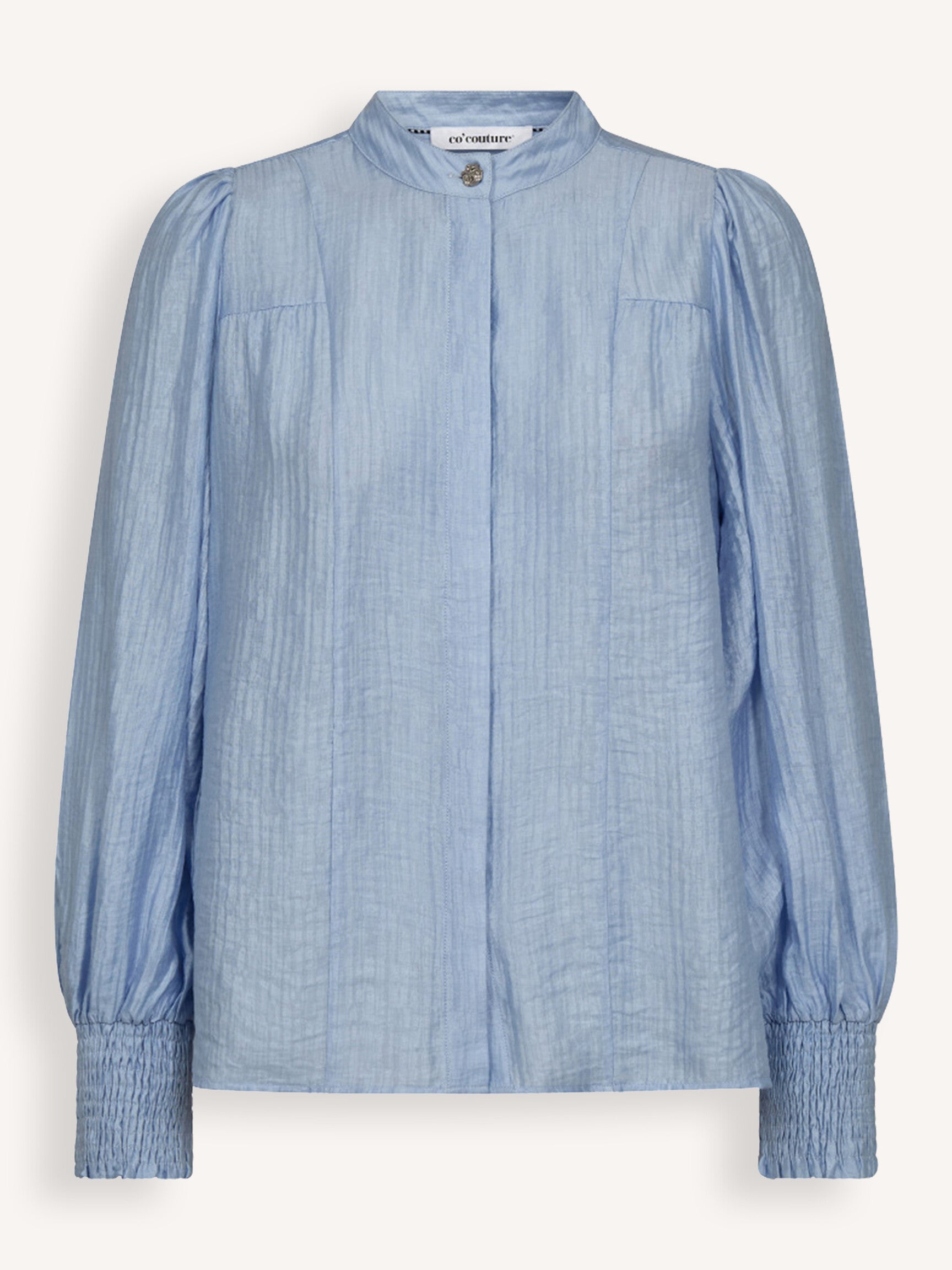 Deze blouse heeft een glanzende, geweven stof en is een los vallend model.